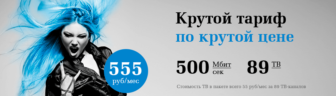 При подключении тарифа «Крутой», всего за 555 руб./мес. дающего Интернет в 500 Мб/с + пакет из 89 ТВ-каналов, абонент получает в бесплатную аренду ТВ-приставку премиум-уровня. Пользуясь ею, он сможет управлять режимом просмотра телепередач (интерактивное ТВ), заказывать фильмы из видеотеки провайдера, смотреть интернет-новости на экране телевизора и даже играть в игры.